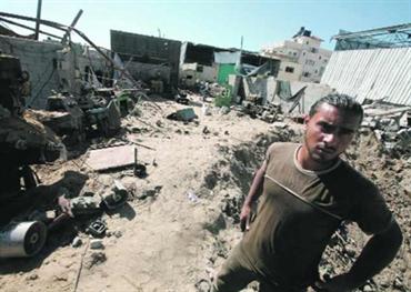 وفي تصعيد جديد، أغارت طائرات من سلاح الجو الإسرائيلي فجر أمس على نفقين للتهريب في جنوب قطاع غزة، وعلى مبنى استخدم لإنتاج الوسائل القتالية قرب غزة. وذكرت الإذاعة الإسرائيلية التي أوردت النبأ في موقعها الإلكتروني، نقلاً عن المتحدث باسم الجيش الإسرائيلي أنه «لوحظت إصابة الأهداف بدقة»، مضيفاً أن الغارة «جاءت رداً على إطلاق قذيفة صاروخية من القطاع باتجاه النقب الغربي».