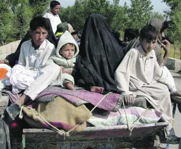 نازحون باكستانيون من منطقة القبائل هرباً من القتال. أ.ف.ب