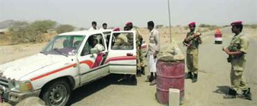 جنود يفتشون إحدى السيارات بالقرب من الحدود مع السعودية. رويترز