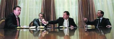 التصريحات الروسية جاءت علـى لسان مدفيديف (يمين) خلال مقابلة مع «دير شبيغل». رويترز