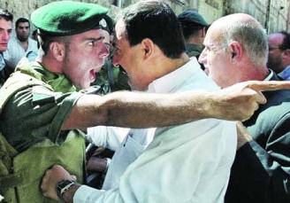 مشادة بين جندي إسرائيلي ومواطن فلسطيني في القدس. رويترز