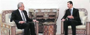 زيارة سليمان لدمشق جاءت بعد 3 أيام من إعلان حكومة الحريري وعشية زيارة الأسد إلى فرنسا. أ.ف.ب