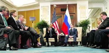 وقال «بوصفنا سياسيين منطقيين نفهم ان اية عملية يجب ان تكون لها نقطة نهاية، ان المحادثات ليس هدفها متعة الحديث، ولكن التوصل الى اهداف عملية». وفي نهاية المحادثات التي جرت على هامش قمة منتدى آسيا والمحيط الهادي في سنغافورة، صافح أوباما، الذي يحتاج بشدة الى مساعدة روسيا في حل ازمة البرنامج النووي الايراني، مدفيديف بحرارة. وقال «لقد وجدت الرئيس مدفيديف كعادته دائماً صريحاً وبنّاءً ومتفهماً». واضاف «لقد نجحت عملية إصلاح العلاقات» بعد سنوات من انعدام الثقة بين البلدين.