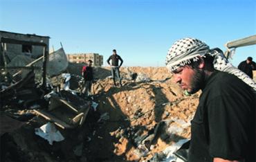 فلسطيني يتفقد آثار القصف الإسرائيلي في منطقة الأنفاق في غزة. أ.ب