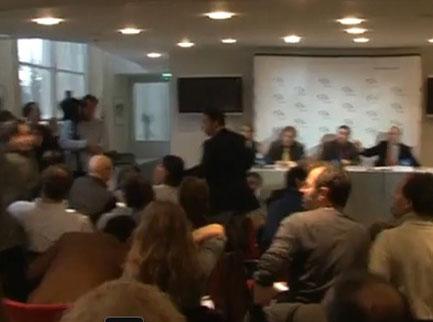 رمى شخص، قدم نفسه على أنه صحافي، حذاءه، أمس، على الصحافي العراقي منتظر الزيدي، الذي اشتهر بعدما رمى حذاءه على الرئيس الأميركي السابق جورج بوش. ووجه الرجل الذي قدم نفسه باللغة العربية على أنه صحافي عراقي، اتهامه للزيدي بـ«الولاء للديكتاتورية»، قبل أن يصرخ «وهذا حذاء آخر لك»، وذلك في مؤتمر صحافي في باريس.