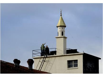 بنى مواطن سويسري غير مسلم "مئذنة" فوق مدخنة مبنى مؤسسته الواقعة في بوسينيي في ضاحية لوزان، احتجاجاً على نتيجة الإستفتاء الذي جرى مؤخراً وحظر بناء المآذن في سويسرا.