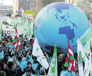 تظاهر عشرات آلاف الأشخاص، أمس، في منطقة آسيا ـ المحيط الهادئ، قبل أن تنظم مسيرات أخرى في أنحاء العالم جميعها، للتوصل إلى اتفاق ملزم خلال مؤتمر الأمم المتحدة حول المناخ، المنعقد في كوبنهاغن. فيما أعربت المستشارة الألمانية، أنغيلا ميركل، عن رفضها بذل المزيد من الجهود الألمانية والأوروبية المسبقة، بغرض الوصول لاتفاقية عالمية لحماية المناخ. وشهدت عواصم ومدن عالمية كبيرة، تظاهرات مطالبة بالتوصل إلى اتفاق ملزم خلال قمة كوبنهاغن حول المناخ.
