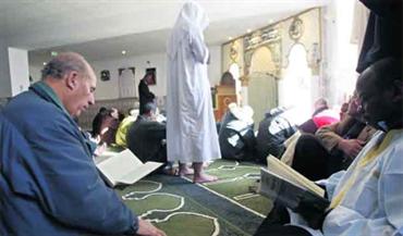 مسلمون فرنسيون قبل أداء الصلاة في مسجد بلال في مرسيليا. رويترز