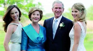 بوش في لقطة أسرية مع زوجته وابنتيه. بلومبيرغ