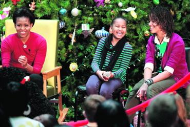ميشيل أوباما مع ابنتيها في مركز طبي. غيتي