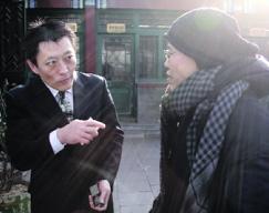 زوجة ليو تتحدث إلى محامي زوجها أمام المحكمة. رويترز