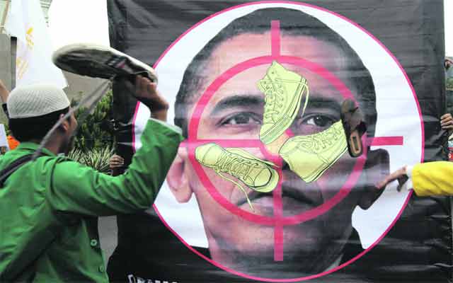 معارضون لأوباما قرروا استقباله بطريقتهم في إندونيسيا. أ.ف.ب