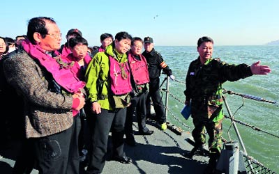 وتُظهر الصورة الأولى جندياً من كوريا الجنوبية يُري عائلات ضحايا السفينة الغارقة مكان الحادث وجهود الإنقاذ التي تبذلها البحرية الكورية، بينما تظهر الصورة الثانية امرأة تبكي أقرباءها الذين راحوا ضحية الحادث، في حين تُظهر الصورتان الثالثة والرابعة جنود البحرية خلال عمليات البحث عن السفينة.
