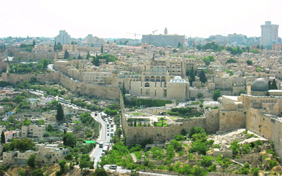 المسجد الأقصى إلى اليمين والحي اليهودي داخل البلدة القديمة في القدس والذي سيقام فيه الكنيس. الإمارات اليوم