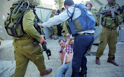 جنود إسرائيليون يعتقلون أحد ناشطي السلام خلال تظاهرة مؤيدة للفلسطينيين. أرشيفية ــ أ.ب