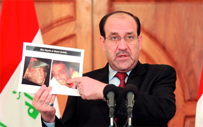 المالكي خلال إعلانه مقتل البغدادي والمصري المرتبطيـــــــــــــــــــــــــــــــــــــــــن مباشرة بأسامة بن لادن. أرشيفية ــ غيتي