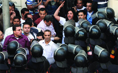 شرطيون مصريون يواجهون متظاهرة لحركة 6 أبريل. الإمارات اليوم