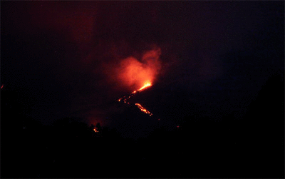 وانفجر البركان (1) مجدداً بعدما أطلق بعض الحمم الاربعاء الماضي، ما ادى الى مقتل شخصين أحدهما صحافي تلفزيوني كان يغطي الحدث.