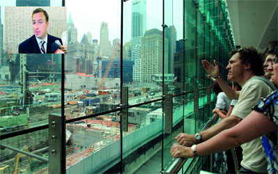 أميركيون يتطلّعون إلى موقع مسجد غروند زيرو.. وفي الإطار مطوّر المشروع شريف الجمل. أ.ب