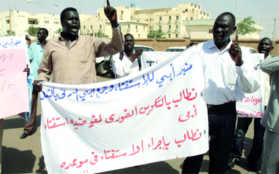 سودانيون من «المجتمع المدني» يتظاهرون دعماً للاستفتاء. أ.ف.ب
