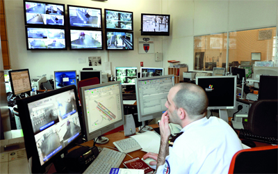 شرطي فرنسي في غرفة المراقبة بالفيديو عقب التحذيرات الأمنية. أ.ف.ب