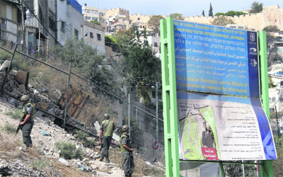 لافتة للإعلان عن مشروع إسكان إسرائيلي بحي سلوان بعد طرد الفلسطينيين منه. إي.بي.أيه