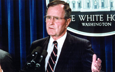 النظام العالمي الذي بشّر به بــــــــــــــــــــــــــــــــــــــــوش الأب قبل 20 عاماً بدأ بالانهيار. أ.ف.ب - أرشيفية