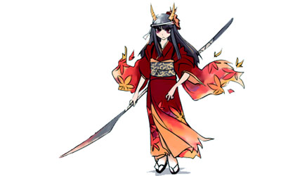 ولكي تحافظ على طبيعتها الشريرة تم تصوير المشاغبة الصغيرة «هينوموتو» بقرنين في رأسها وقناع شيطاني، وتنزع هذا القناع والقرنين عندما تقوم بحركات فكاهية من بينها مطاردة حيوانات المزارع مستخدمة سيف الساموراي التقليدي.