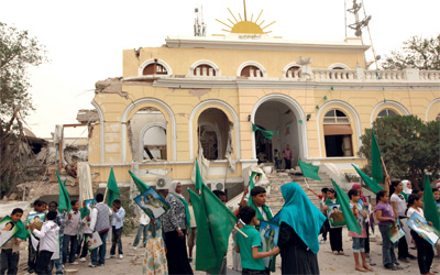 أطفال ليبيون تجمعوا حول مبنى حكومي في طرابلس عقب قصفه. أ.ف.ب
