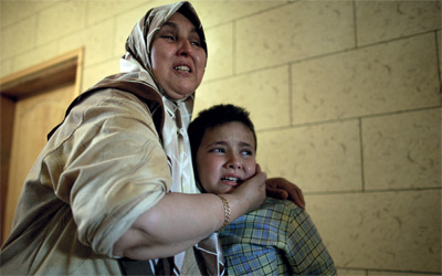 المدنيون خصوصاً الأطفال ضحايا قصف قوات القذافي. إي.بي.إيه