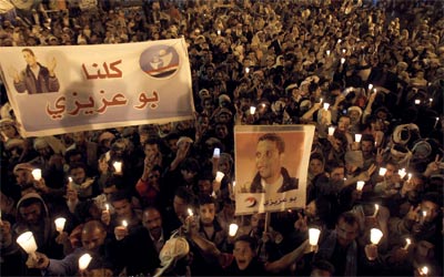 توفي رجل جزائري منتصف يناير ،2011 بعد أن أشعل النار في نفسه بالقرب من مبنى حكومي في مدينة بوخضرة في تبيسا، بسبب فشل الحكومة في توفير وظيفة ومسكن مناسبين له. وكان محسن بوطرفيف اجتمع مع رئيس بلدية المدينة لهذا الغرض، وعلى الأثر تظاهر اكثر من 100 شاب بسبب موت محسن في ولاية تبيسا الأمر الذي أدى الى فصل رئيس بلدية مدينة بوخضرة. وفي 17 يناير، صب مواطن مصري الوقود على جسمه وأشعل في نفسه النار خارج مبنى مجلس الشعب في القاهرة. الرجل هو عبدو عبدالمنعم، صاحب مطعم، وادعى قبل ان يفارق الحياة ان سلطات محافظة الإسماعيلية رفضت منحه نصيبه من الخبز الذي تدعمه الدولة.