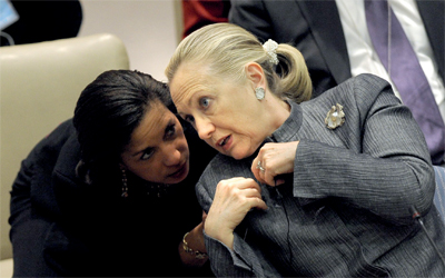 وزيرة الخارجية الاميركية هلاري كلينتون أثناء اجتماع اممي بشأن سورية. إي.بي.أيه