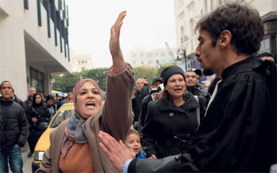 وفي ليبيا أثار مصطفى عبدالجليل، رئيس المجلس الوطني الانتقالي، قلق الكثيرين، عندما تعهد بالالتزام بالشريعة في ما يتعلق بقضية تعدد الزوجات، في كلمة ألقاها احتفالا بـ«تحرير» ليبيا من حكم الزعيم السابق معمر القذافي الذي استمر 42 عاماً، لكنه منذ ذلك الحين هوّن من شأن أي تلميحات عن حكم إسلامي متشدد. وفي تونس، مهد انتفاضات «الربيع العربي» التي أجبرت الرئيس السابق زين العابدين بن علي على التنحي، احتشدت «العلمانيات» للدفاع عن طبيعة حياتهن الغربية، بعد فوز حركة النهضة الإسلامية بالسلطة في أول انتخابات حرة تجريها البلاد، بما في ذلك كل المقاعد التي حصلت عليها النساء تقريباً. وتضغط النساء على الاحزاب لحماية قانون 1956 الذي يمنح المرأة التونسية مساواة كاملة مع الرجل، ومواجهة الضغط المتزايد من المتشددين الذين يرغبون في إعادتهن إلى أدوارهن التقليدية.