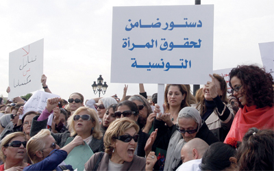 تونسيات يتظاهرن دفاعاً عن حرية المرأة. أ.ف.ب