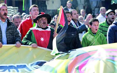 ولايزال تعداد المحتجين في العاصمة عمان، وفي اماكن اخرى، صغيراً، كما انهم لايزالون مسالمين، في حين ان حالة القمع التي تقوم بها الدولة تعد لطيفة بمقاييس الشرق الأوسط. وقالت الناشطة الشابة في المجتمع المدني، ايمان جرادات «صحيح انه ليس هناك الكثير من العنف لأن الأردن لم يصل الى نقطة التحول، لكن اعتقد ان ذلك سيحدث لاحقاً».