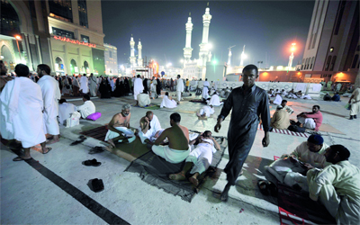 حجيج في باحة المسجد الحرام في مكة. أ.ف.ب
