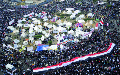 المتظاهرون في ميدان التحرير نجحوا في إسقاط ستة عقود من الدكتاتورية. أ.ف.ب ــ أرشيفية