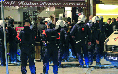 شهدت الأحياء الفقيرة في ضاحية استوكهولم، حيث تقطن أغلبية من المهاجرين، مساء أول من أمس، لليلة السابعة على التوالي، أعمال شغب، إذ تم مجدداً إحراق سيارات ومهاجمة شبان من المهاجرين لرجال الشرطة. وقد امتدت الاضطرابات في اليوم السادس الى مدن بوسط البلاد، ولم يسجل أمس أي حادث خارج العاصمة. وأكدت الشرطة أن أعمال الشغب هذه التي اندلعت قبل أسبوع بالتمام تتجه الى الانحسار في نطاقها وحدّتها.
