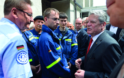 وقد توجه الرئيس الالماني يواكيم غاوك، أمس، الى المدن المنكوبة جراء الفيضانات في مقاطعتي سكسونيا وسكسونيا انهالت، والمشاركة في قداس مع المسعفين وسكان هالي (شرق).