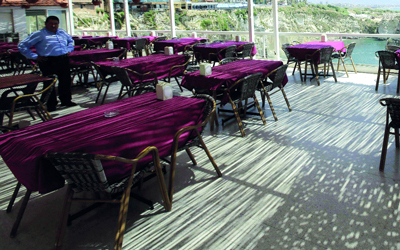 المطعم الواسع الذي تحده القناطر وتزينه الزهور شبه خال «لا توجد حجوزات لليلة» يقول ضيا. الشارع الذي كان يستحيل سلوكه في مواسم الاصطياف الماضية، بسبب الزحمة، يشهد حركة خفيفة.