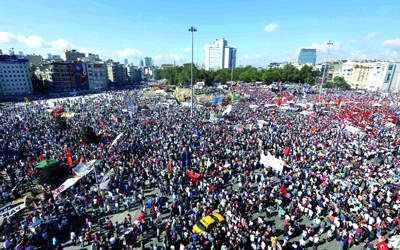 انتشرت الاحتجاجات التي بدأت بعد قطع عدد من الأشجار، جزءاً من عملية تطوير حديقة جيزي في ميدان «تقسيم» في مدينة اسطنبول التركية، سريعاً في شتى أنحاء تركيا، وبصورة خاصة في اسطنبول وأنقرة وأزمير. وتطورت هذه الاحتجاجات التي بدأت من قبل الناشطين المدنيين حول ساحة تقسيم، إلى تظاهرات معادية للحكومة. وجذبت تظاهرات جيزي بسرعة انتباه العالم، وأطلق قادة الدول التصريحات المتعلقة بالاحتجاجات التركية. وتابعت الصحافة العالمية أيضاً تطورات هذه التظاهرات.