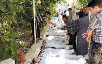 مجزرة الغوطة «الكيماوية» دفعت الولايات المتحدة إلى التهديد باستخدام القوة العسكرية ضد نظام الأسد. أ.ف.ب
