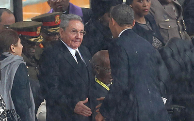 من الطبيعي أن تبدي الأوساط السياسية والإعلامية في العالم اهتماماً كبيراً وخاصاً بالمصافحة، التي وصفت بأنها تاريخية بين الرئيس الأميركي باراك أوباما والرئيس الكوبي راؤول كاسترو، أثناء مراسم جنازة الزعيم الجنوب افريقي نيلسون مانديلا. وإضافة إلى ما يعتقده البعض من أن هذه المصافحة تعد لفتة للتقارب بين جارتين عدوتين سابقتين لا تثقان ببعضهما، فإنه يمكن تفسيرها ايضاً بأنها لفتة وفاء من اوباما لبطله مانديلا والأفكار والقيم التي يؤمن بها. كما أن هذه المصافحة التاريخية بعد عقود من الحرب الباردة بين واشنطن وهافانا تعد اعترافاً رمزياً باحترام الأشخاص، وتعبيراً عن الديمقراطية لأنها تساوي بين الأفراد المتصافحين.