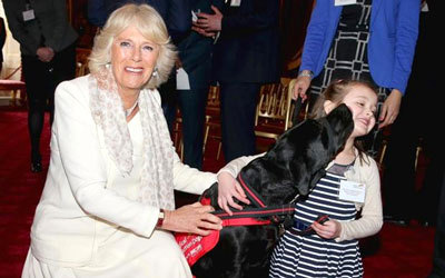 الدوقة كاميلا مع أحد كلاب الليبرادور. أرشيفية