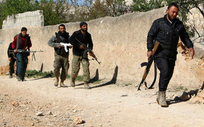مقاتلون من الجيش الحر في مدينة إعزاز شمال حلب. رويترز