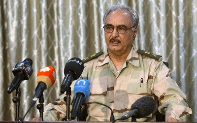في الوقت الذي يعتقد المرء أن الفوضى التي تعم ليبيا لا يمكن أن تسوء أكثر مما هي عليه، يفاجأ بأن الأمور تتجه نحو الأسوأ. وكانت الجولة الأخيرة من الفوضى متعددة الأبعاد التي سادت البلد منذ الإطاحة بالعقيد معمر القذافي، قد بدأها جنرال عسكري سابق يدعى خليفة حفتر، الذي تدرب في الاتحاد السوفييتي وشارك كضابط صغير في الانقلاب الذي أدى إلى وصول القذافي إلى السلطة عام 1969. وبعد فترة من الزمن اختلف مع القذافي وسافر إلى أميركا، حيث بقي هناك سنوات وأصبح مواطناً أميركياً، ليعود إلى ليبيا بعد الإطاحة بالقذافي. وقام بتجميع قوات أطلق عليها «الجيش الوطني الليبي» بهدف الإطاحة بالبرلمان المؤقت في طرابلس.