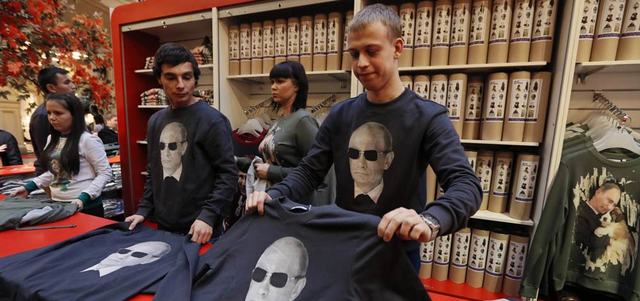 في الوقت الذي تؤدي فيه التوترات الدبلوماسية إلى حرق العلاقة بين روسيا والعالم الغربي، بات التعصب القومي يشكل صيحة جديدة في أزياء موسكو. واصطف الروس في طوابير طويلة مساء الاثنين الماضي أمام مركز «جي يو ام» للتسوق في الساحة الحمراء لشراء «آخر أفكار مصدر الفخر القومي»، التي تتمثل في قمصان وملابس أخرى تحمل صوراً تدل على حب الروس للرئيس فلاديمير بوتين، وهو يرتدي ملابس عسكرية أو ملابس رياضة الهوكي أو يقبل كلباً، وكتب عليها تحذير يقول «احذر فإن بوتين يقرأ أفكارك الآن».