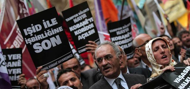 تظاهرات لأكراد أتراك لدعم مدينة كوباني. أ.ب