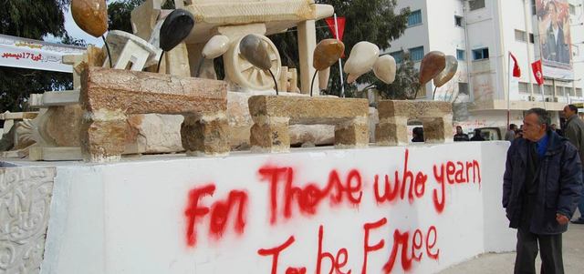 «ثورة الياسمين» شاركت الناشطة جميلة بينوس في ثورة يناير، فقد بقيت في الخيام مع المعتصمين مدة أسبوعين إلى أن سقط النظام في نهاية المطاف. وتتذكر الناشطة ذلك بالقول «لقد كانت فترة قلق كبير تلتها ما يشبه النشوة، لقد كان حلماً فقد حدث شيء لا يمكن تصوره». ومنذ ذلك الحين، عاشت بينوس فترة طويلة من خيبة الأمل، على الرغم من أنها تأمل أن انتخابات الأحد الماضي ستقلب الأمور رأساً على عقب. |