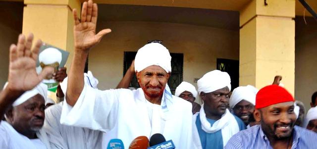 الصادق المهدي خلال مؤتمر صحافي عقب إطلاق سراحه في يونيو الماضي. إي.بي.ايه